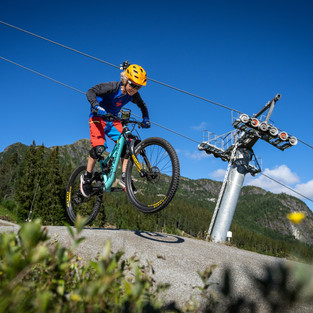 We meet construction manager Mark McClure at the top of the Hollvin lift, which carries thousands of happy skiers up into the alpine terrain in winter. Soon the lift will be filled with mountain bikes of all sizes.